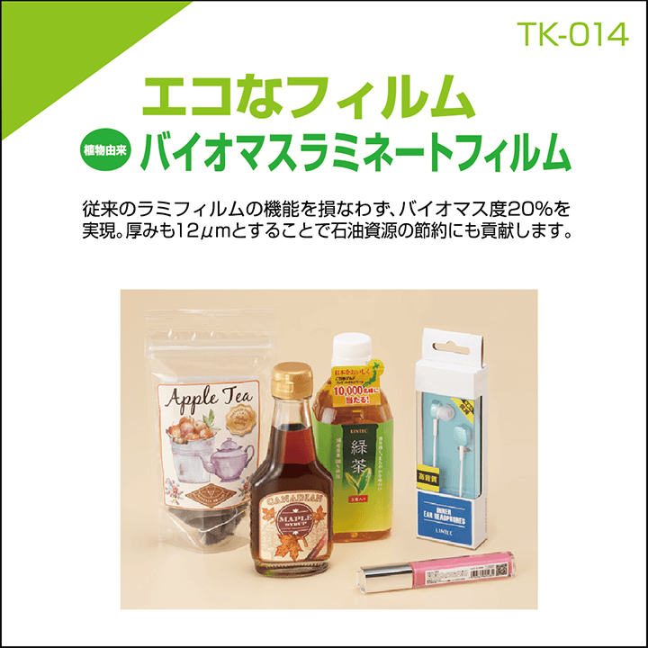 再生材、植物由来、ダウンサイジング、脱プラスチックを4本の柱とするエコなラベルをとり揃えております。
